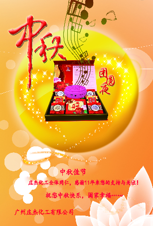 中秋將近,我是第一個給您送祝福的嗎?莊杰全體同仁,在此祝您:中秋快樂,闔家幸福!莊杰化工成立不知不覺已經(jīng)11年了,11年來始終秉承“精細(xì)、環(huán)保、忠信、共贏”的理念服務(wù)廣大印染朋友。11年如1日,只生產(chǎn)高質(zhì)量染整助劑。