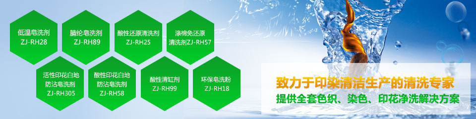 活性或直接染料印染的織物應(yīng)可以在染缸或者平幅洗水機(jī)中皂洗,在染缸中皂洗,皂洗工藝為:洗水,過酸中和,加皂洗劑(ZJ-RH07,0.1-0.3g/l),95度*10分鐘,洗水一道或者兩道。
